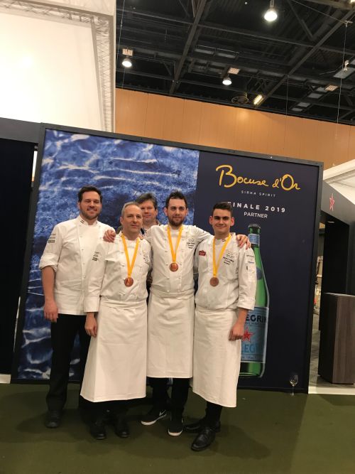 La Finale Mondiale du Bocuse d’Or, l’événement gastronomique le plus prestigieux au monde, s’est déroulé à Lyon entre le 29 et 30 janvier, accompagné par le SIRHA, le Salon de la restauration et de l’hôtellerie. Grâce à la collaboration de l’Académie hongroise Bocuse d’Or, et de l'Agence hongroise de tourisme (MTÜ), les visiteurs ont pu déguster l’offre fantastique de la gastronomique hongroise sur le stand national. Le 29 janvier, nous avons pu acclamer le jeune chef de l’équipe hongroise, Ádám Pohner, qui a passé avec succès la finale européenne du Bocuse d’Or en 2018. À cet événement gastronomique de classe mondiale, notre Ambassade était représenté par Mme Marianna Nesuta Gresóné, Attachée agricole et M. Péter Bakos-Blumenthal, consul.